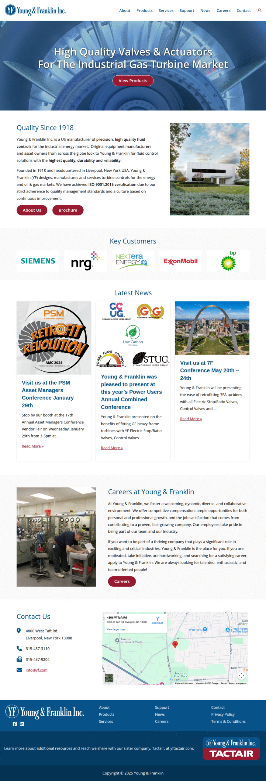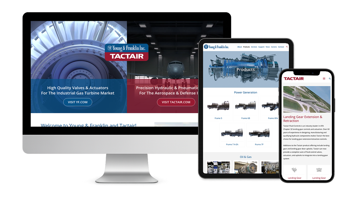 In early 2024, Young and Franklin and Tactair engaged Cowley to redesign and rebuild their suite of websites. After reviewing their audiences and goals, we compared the benefits of a single unified site with the benefits of three focused sites. Three separate sites made the most sense because they allowed each brand line to highlight its own capabilities while still supporting the larger organization.